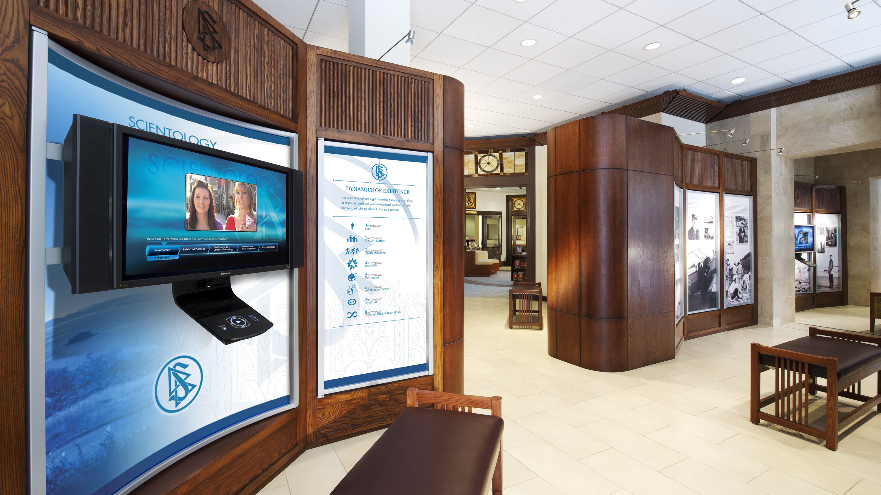 Además de sus servicios a los feligreses, la nueva Iglesia presenta un extenso centro de información al público en el primer piso, justo afuera de la galería. Sus paneles multimedia presentan e ilustran las creencias de Scientology, la vida de su Fundador, L. Ronald Hubbard, y una gama completa de los programas de mejoramiento social y de gran alcance para la comunidad de la Iglesia.